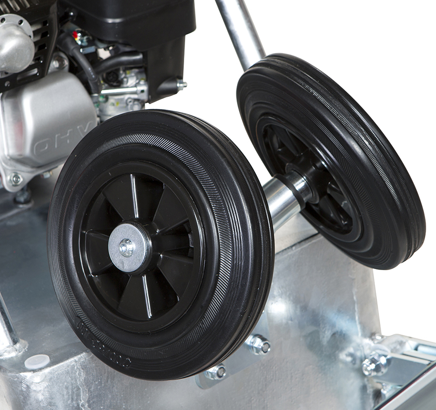 - Zintegrowany zbiornik na wodę (12 l) – umożliwia równomierne zraszanie płyty, co zapobiega przywieraniu asfaltu i pozwala uzyskać gładką powierzchnię.